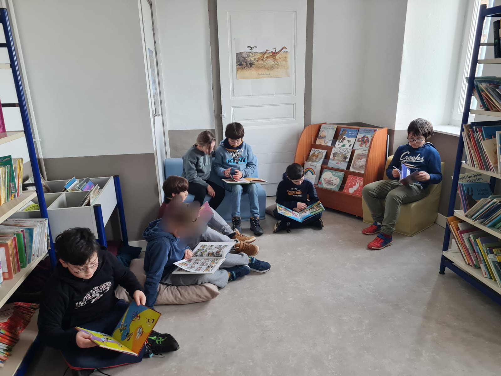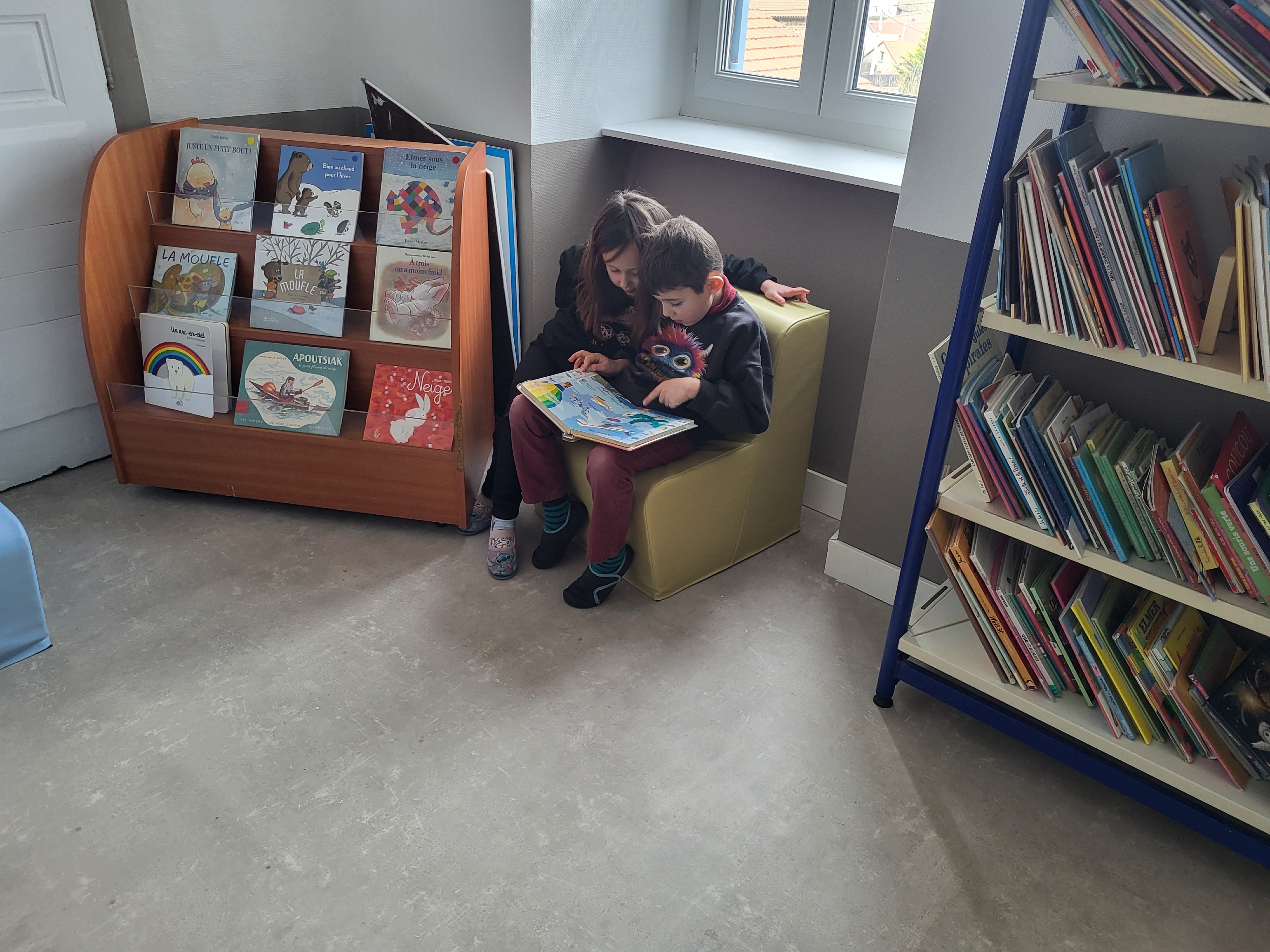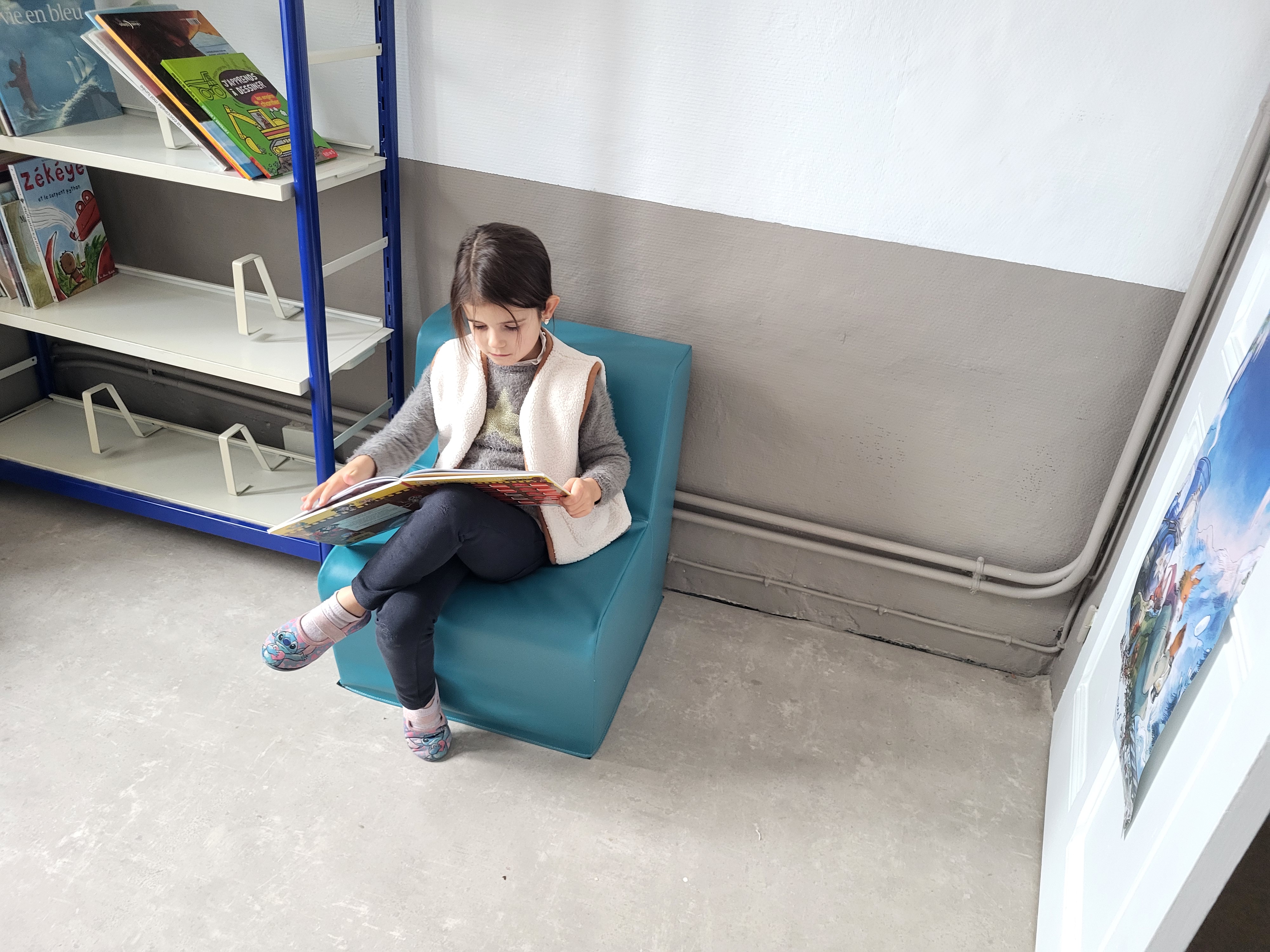 À l’occasion de Noël, l’Apel a souhaité compléter ce projet en offrant du nouveau mobilier pour la bibliothèque : deux chauffeuses et une banquette, créant ainsi des espaces confortables où les enfants peuvent lire, écouter des histoires ou travailler autrement, dans une ambiance conviviale.