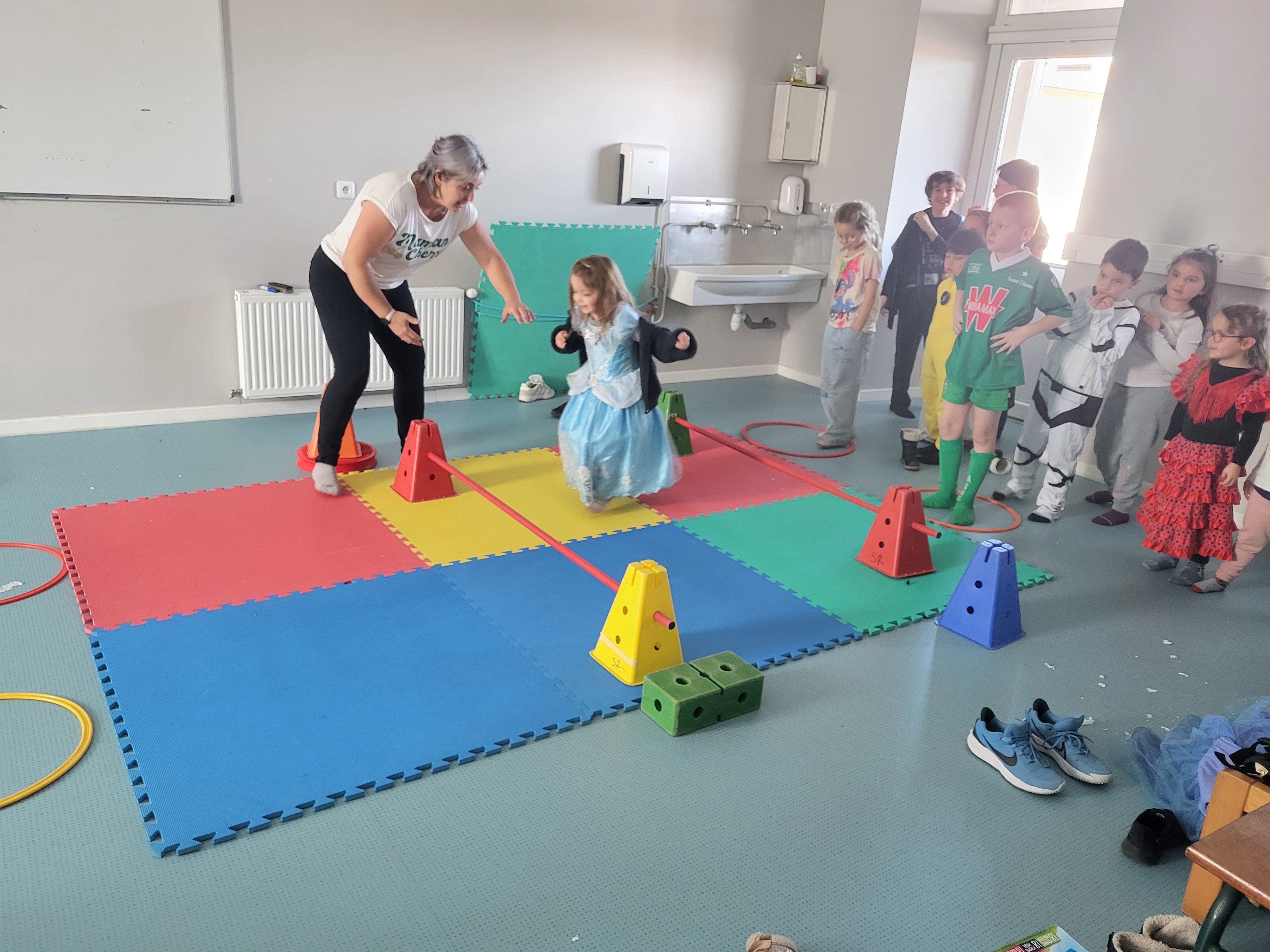 🏃♂️ Parcours sportif dans la salle de motricité : défis, équilibre, agilité… et surtout beaucoup de rires !