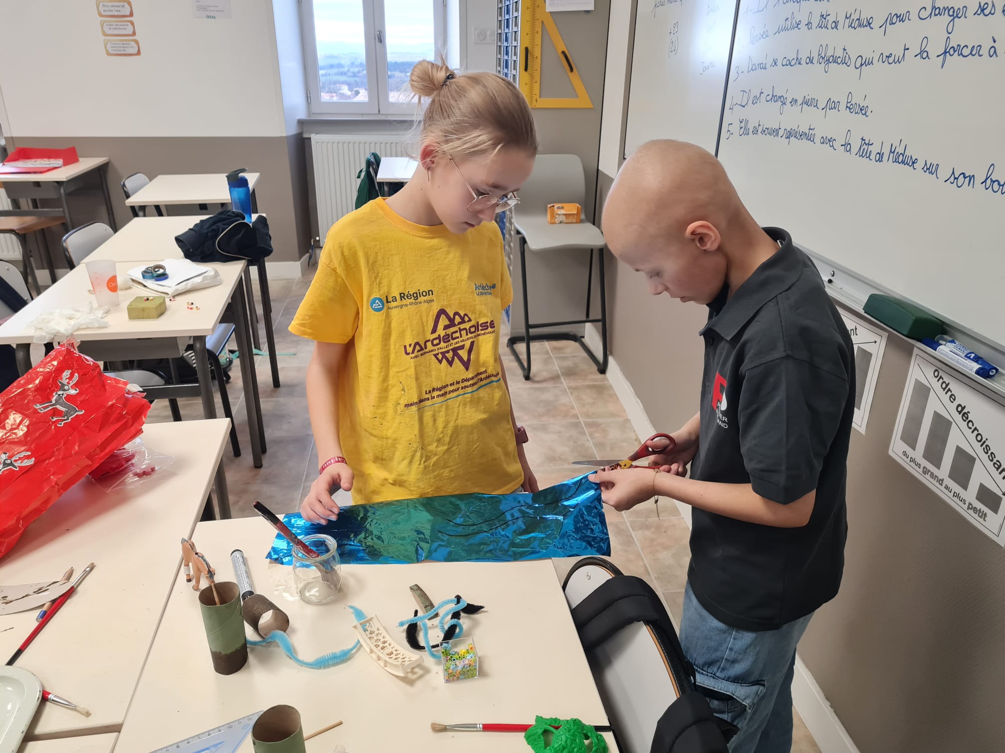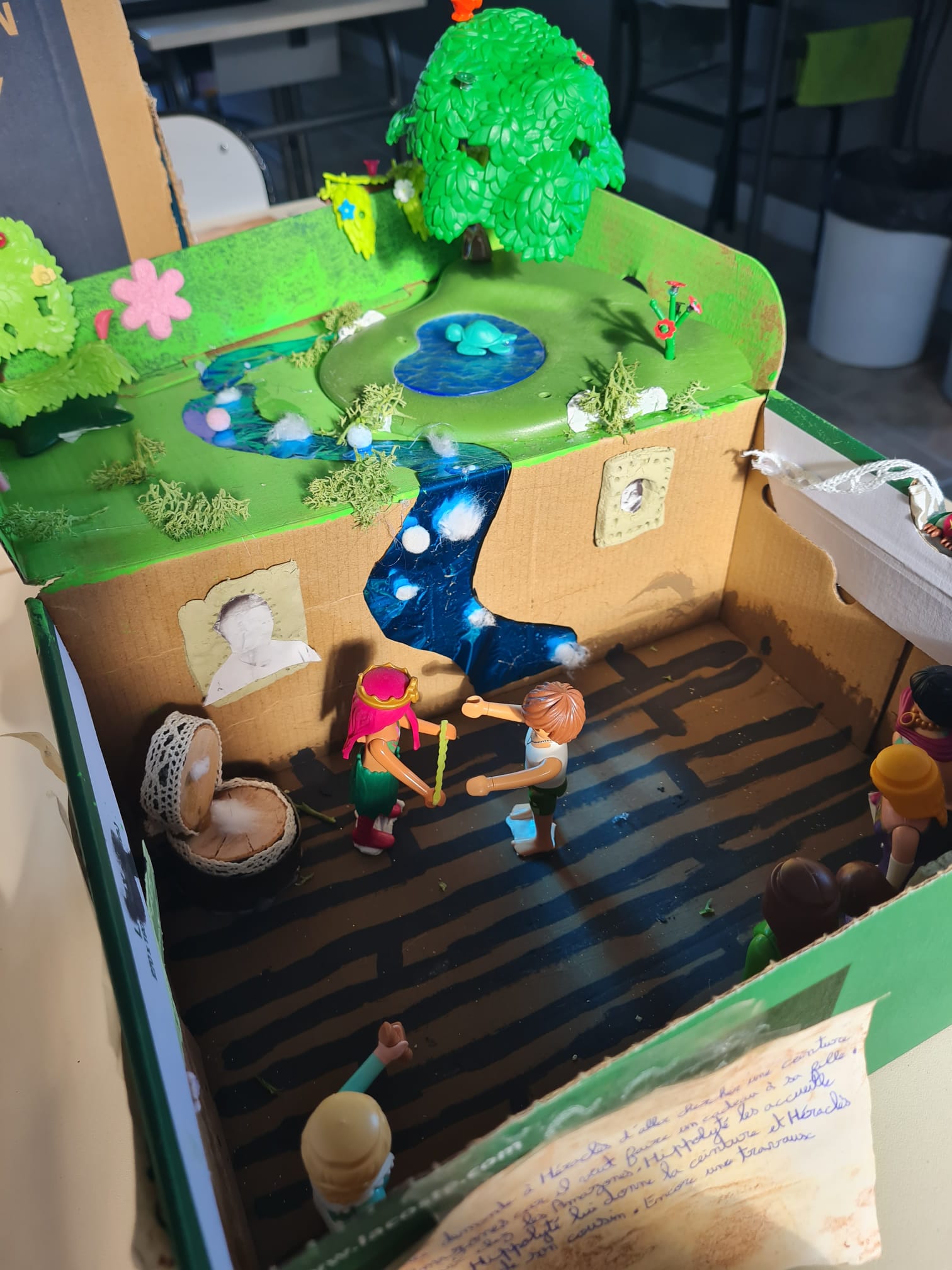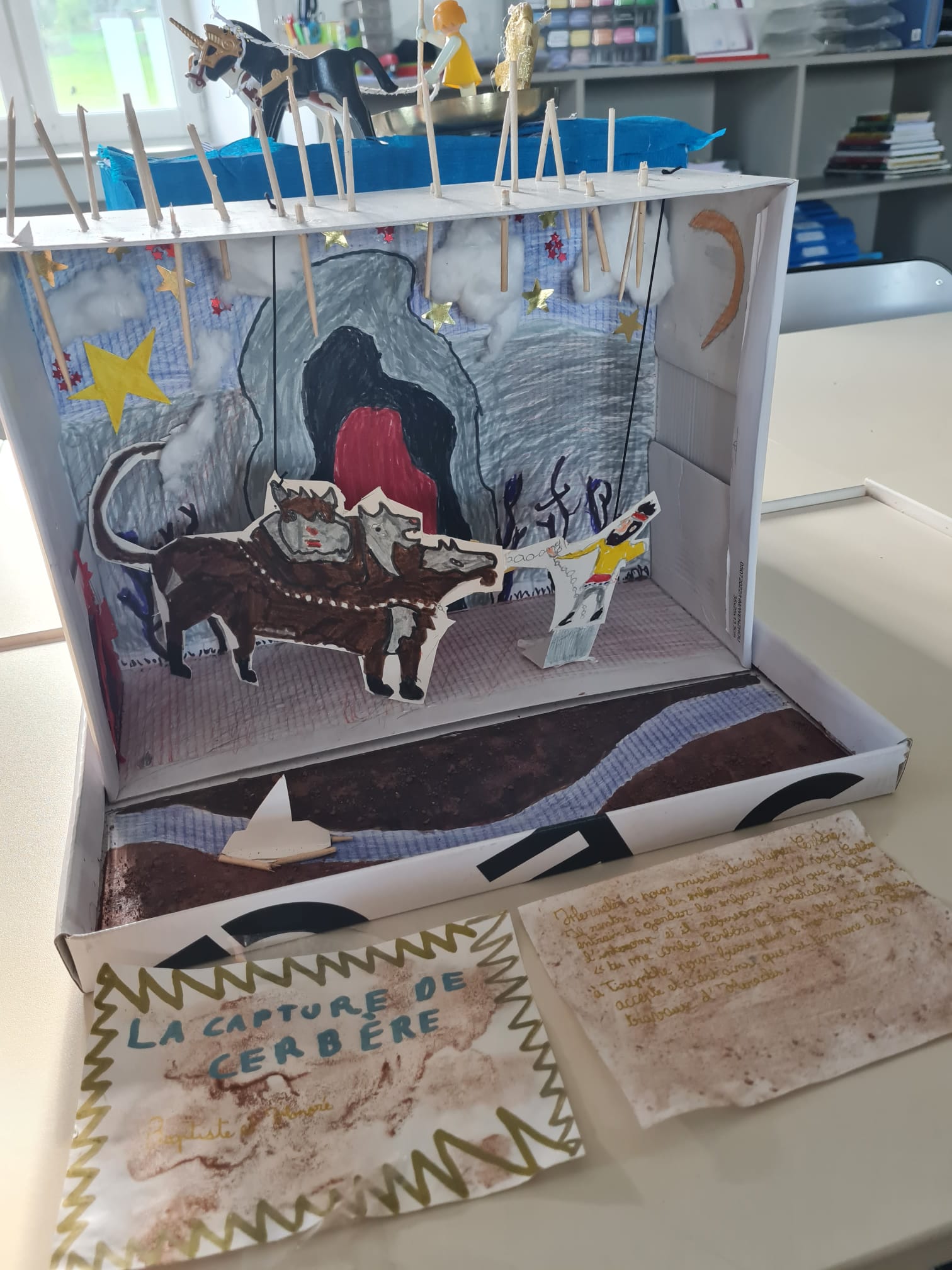 Chaque groupe s’est documenté et a laissé libre cours à sa créativité pour représenter des scènes emblématiques telles que l’Hydre de Lerne, les bœufs de Géryon, le lion de Némée, les Amazones ou encore la capture de Cerbère. Entre imagination et précision, les élèves ont su donner vie aux récits légendaires.