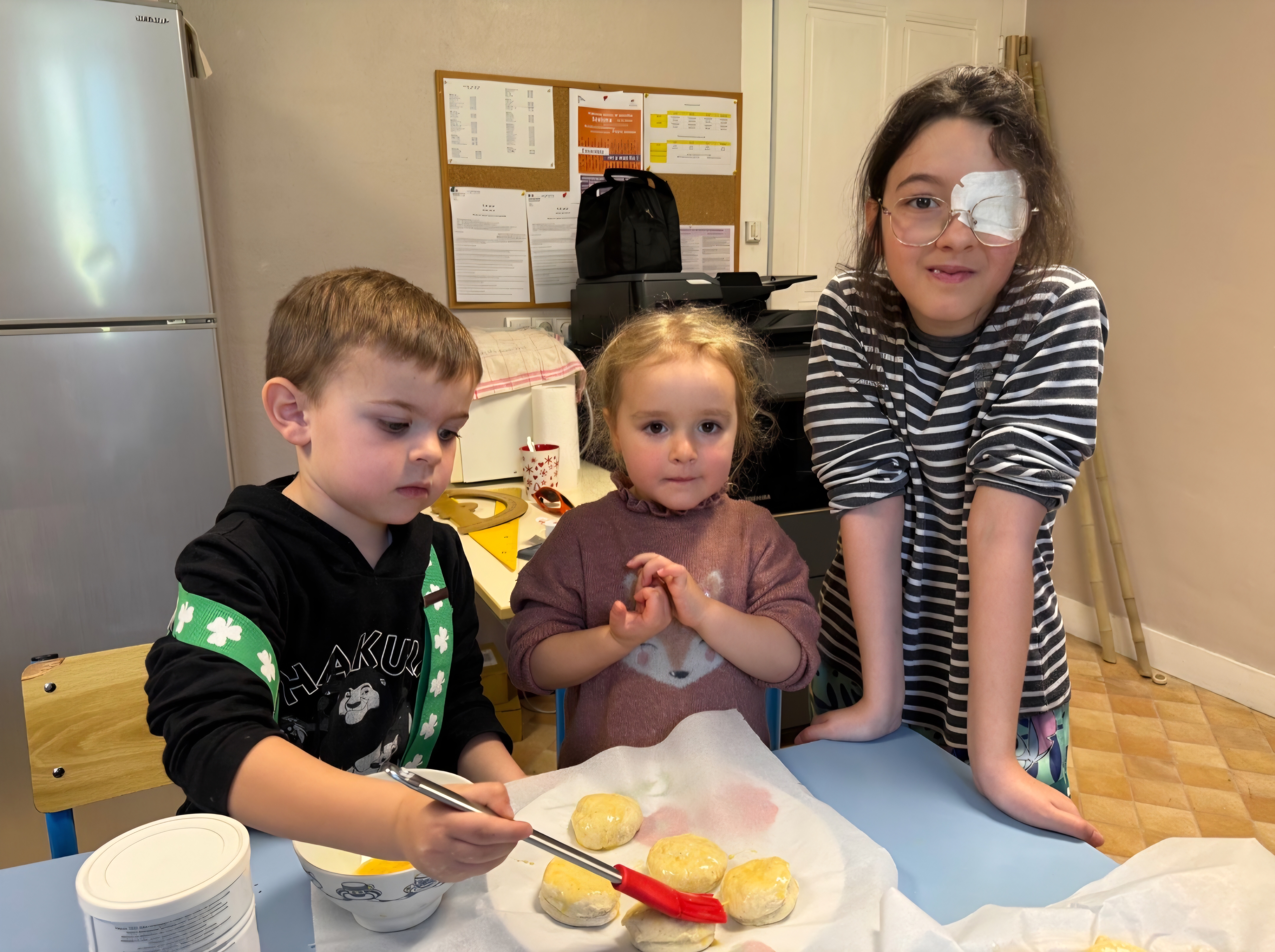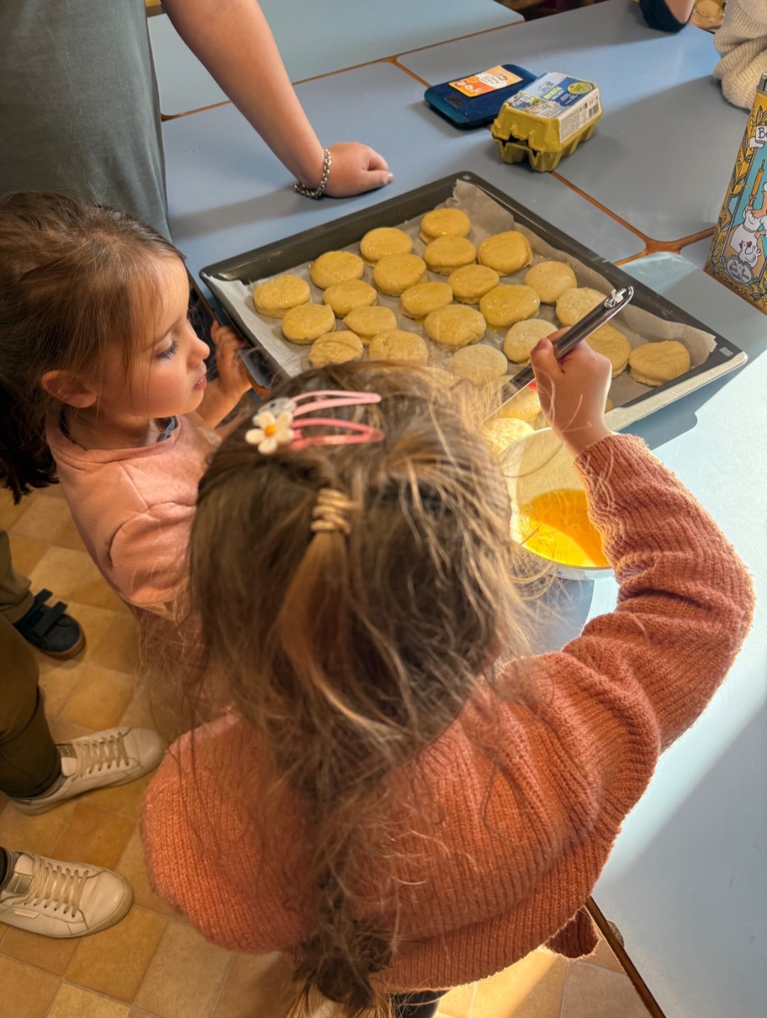 Place ensuite à la gourmandise avec un atelier cuisine. Les enfants ont mis la main à la pâte pour réaliser de délicieux scones, spécialité traditionnelle irlandaise. Entre mélange des ingrédients, façonnage, chacun a participé avec plaisir à cette activité conviviale.