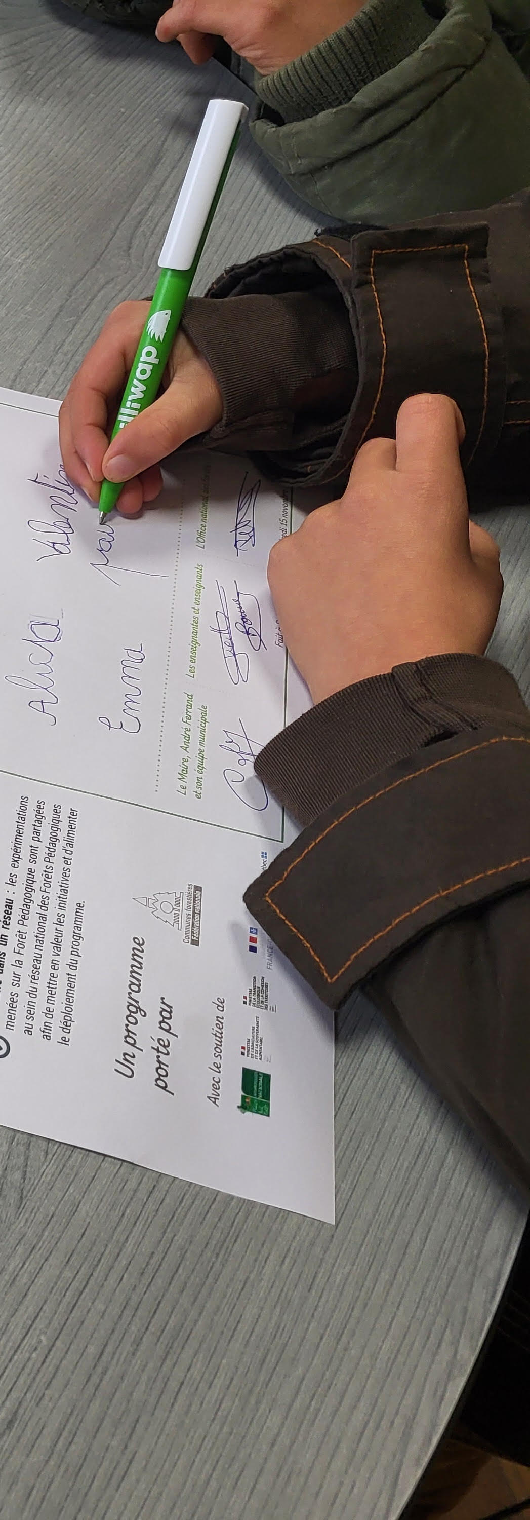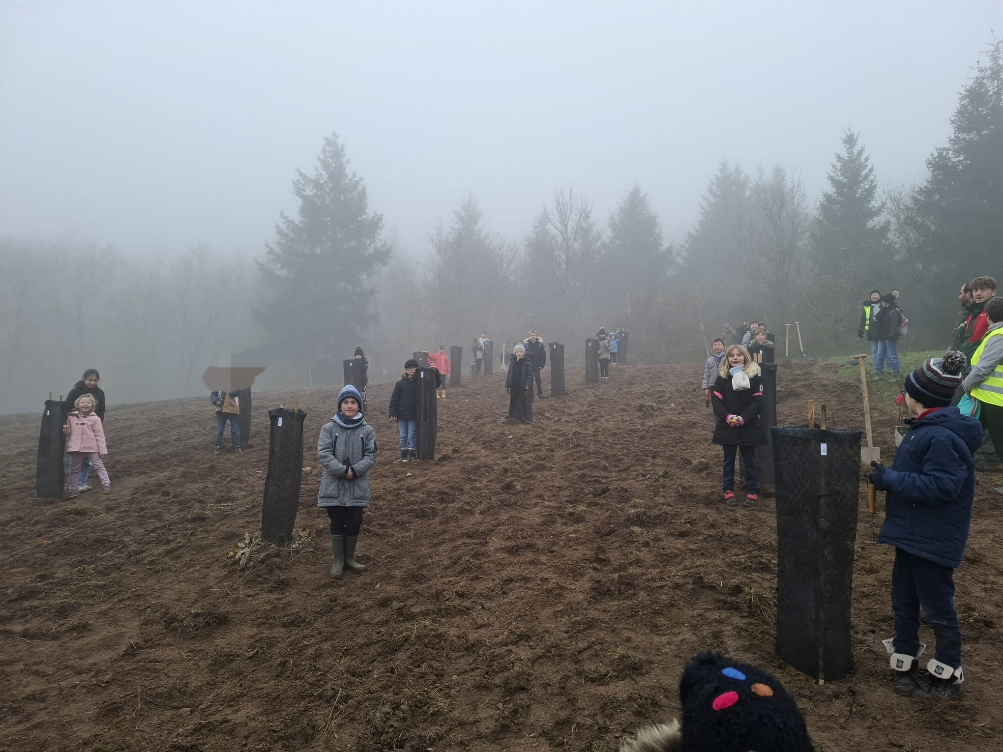 Un matin de novembre, Julien, garde forestier, est intervenu dans la classe des plus grands afin de leur expliquer la faune et la flore de nos forêts. L'après-midi, ils traversaient ensemble jusqu'à la mairie ou les attendaient monsieur le maire et deux de ses adjoints Nicole et Gaëtan afin de signer leur engagement auprès de ce précieux patrimoine. Quelques jours plus tard, affrontant le brouillard et le froid, ils réalisaient leur plantation sur une parcelle communale dont ils seront les garants.