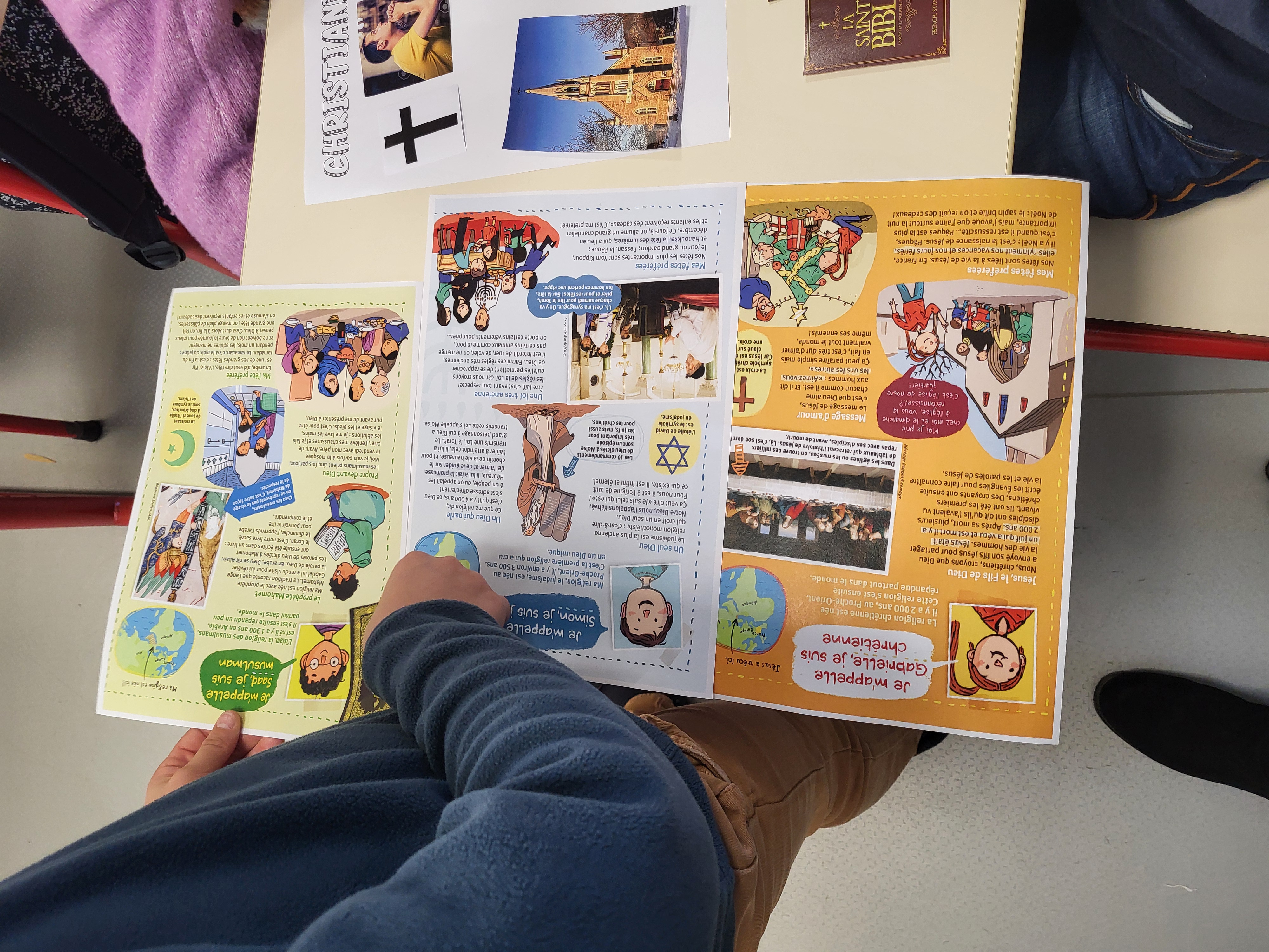 L’objectif n’est pas de croire, mais de comprendre, d’observer les points communs et les différences, et de développer une pensée ouverte et respectueuse à travers des tris d’images et des lectures.
