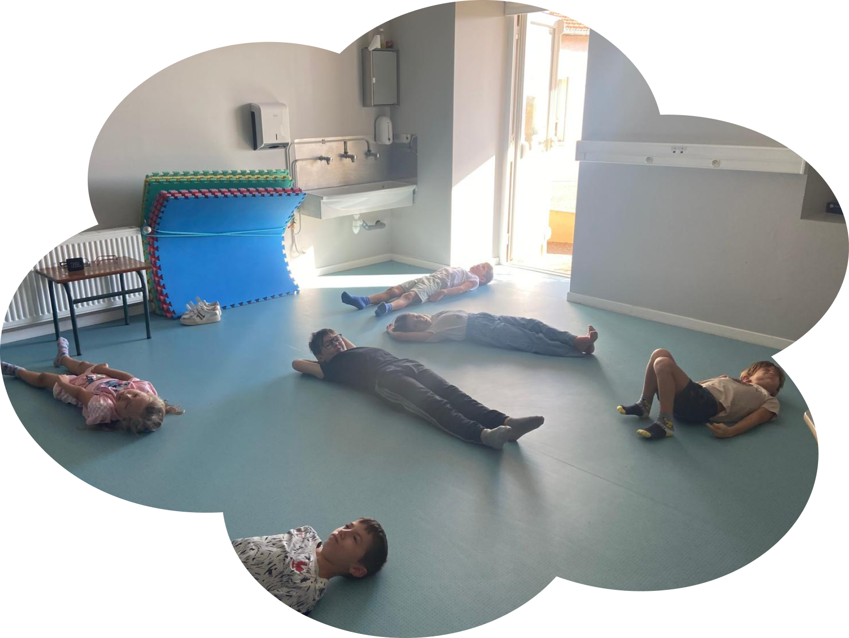 La journée débute toujours par du sport, en musique avec « just dance » pour bouger et de la sophrologie, pour se détendre et mieux se concentrer.