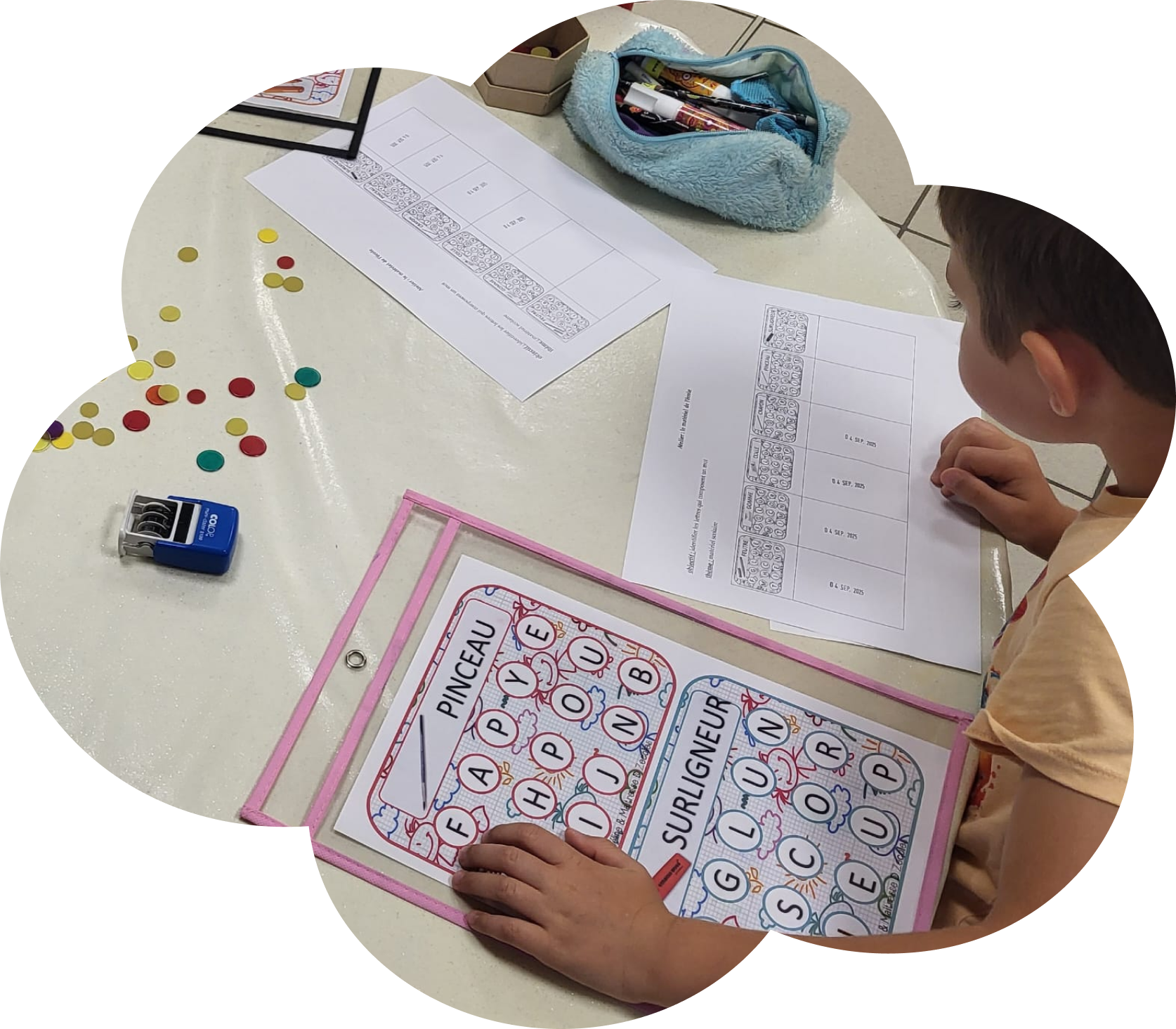 Ensuite, place aux ateliers individuels de manipulation en lien avec les programmes de l’Education nationale. Ils permettent à chacun de progresser à son rythme et de développer son autonomie, tout en prenant confiance en ses capacités.